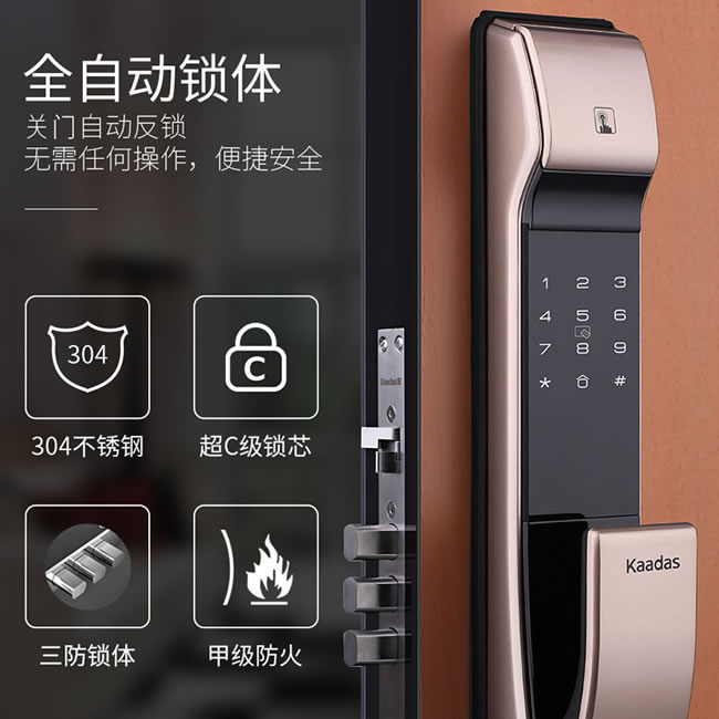 產品優勢:KDS觸摸技術,專利三防鎖體,虛位密碼,K+K技術,全語音提示,多種安全設計,四合一開向