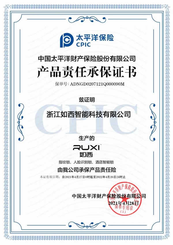 中國太平洋保險選擇為如西承保,為如西智能鎖產品質量背書,充分體現了他們對如西產品品質的信心,是對如西在智能門鎖領域實力的高度認可!如西智能鎖足夠安全、可靠,消費者無需擔憂,完全可以放心使用。