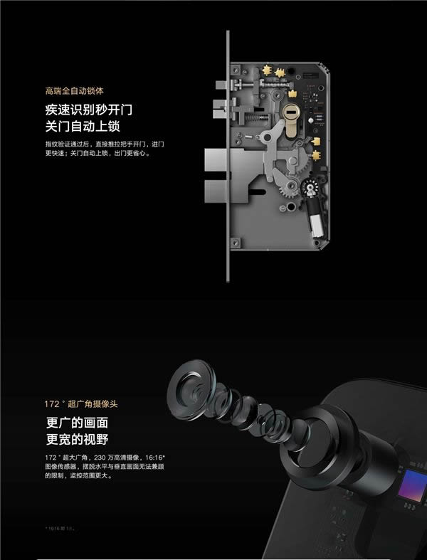 小米全自動(dòng)智能門(mén)鎖Pro將貓眼和門(mén)鈴集成于智能鎖鎖體內(nèi),搭載了業(yè)內(nèi)最大的172°超廣角攝像頭,而且能夠生成高達(dá)230萬(wàn)像素的畫(huà)面,16:16的畫(huà)面比例能夠擺脫水平與垂直畫(huà)面難以兼顧的問(wèn)題,監(jiān)控范圍更大。而門(mén)鈴也同樣智能化,獨(dú)特的感應(yīng)式門(mén)鈴在識(shí)別到門(mén)外來(lái)人之后,會(huì)主動(dòng)喚醒亮起,在暗光環(huán)境下能夠更好地被訪客看到,使用頻次也會(huì)因此提高。
