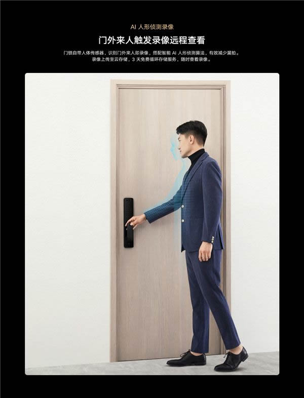 攝像頭使用頻率高了,但也難免會(huì)遇到異常情況。在遇到這些異常情況的時(shí)候,多數(shù)智能鎖采用的是抓拍功能,而小米全自動(dòng)智能門(mén)鎖Pro采用智能AI偵測(cè)錄像,遇到這類(lèi)情況會(huì)立即啟動(dòng)錄像并且同步上傳至云存儲(chǔ),搭配16:16圖像傳感器能夠有效減少漏拍缺拍,不錯(cuò)過(guò)每一個(gè)異常畫(huà)面。