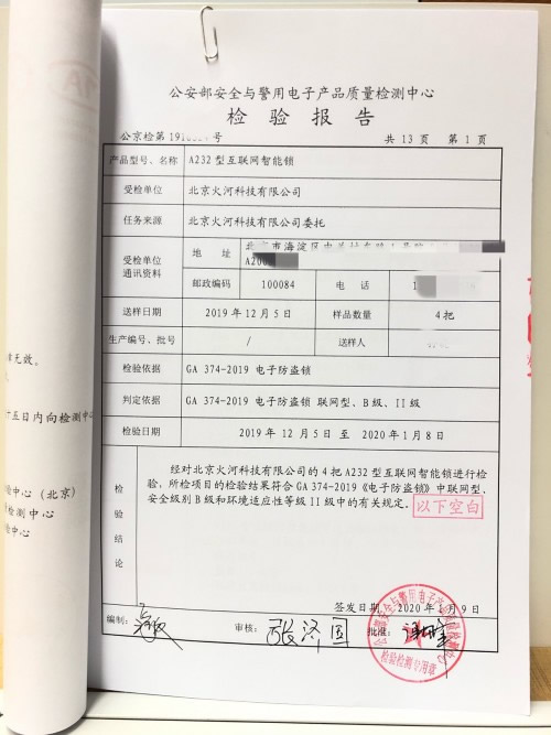 在智能門鎖行業內,火河科技的產品一直是高品質的代表。型號為A232的火河商用智能門鎖,是經過長時間研發打磨的首款基于NB-IoT技術的商用智能門鎖產品,2019年剛剛進行小范圍內測便受到業界高度關注。近日,該產品更是率先完成了公安部2019年最新頒布的權威標準《GA-374-2019 電子防盜鎖》認證,也就是業界俗稱的“GA374-2019認證”。
