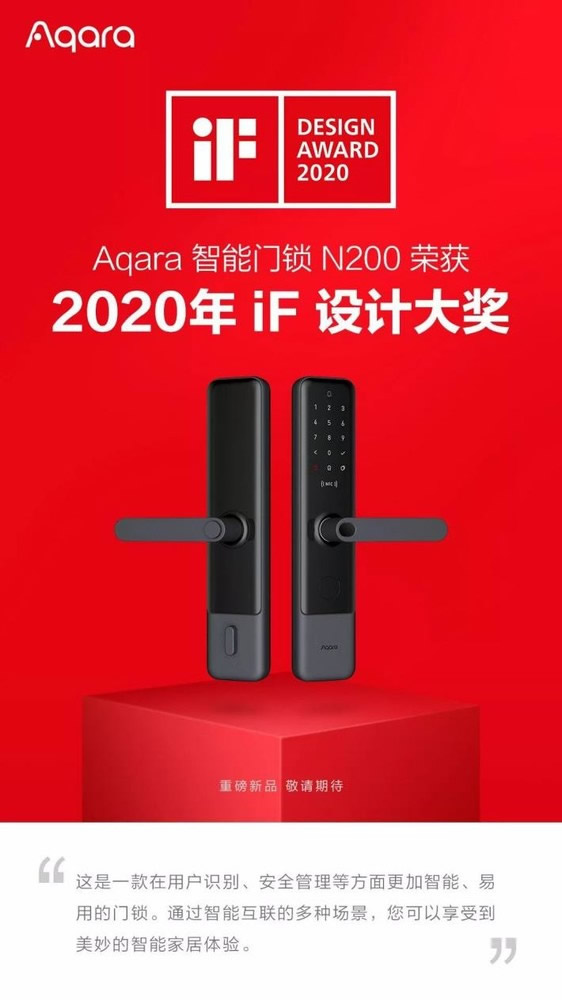 2020年德國iF設計獎日前正式出爐,Aqara旗下兩款新品Aqara智能門鎖N200和Aqara智能聯排開關H1憑借出眾的設計和優秀的交互斬獲兩項設計大獎。 Aqara堅信設計鑄就美好生活品質,在易用、好用的基礎上