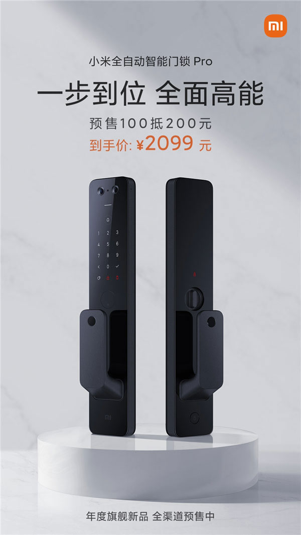6月29日,小米全自動(dòng)智能門鎖Pro在全渠道開啟預(yù)售。此次新品主打攝像頭功能,為此小米特別研發(fā)了172°高清攝像頭及多項(xiàng)配套功能。預(yù)售期間定金100元可抵200元,到手價(jià)2099,參與預(yù)售、付完尾款后加贈(zèng)米家智能驅(qū)蚊器2。