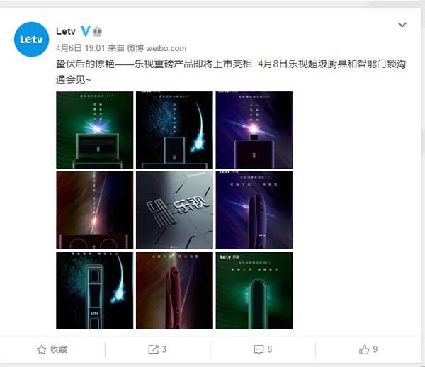 4月6日,樂視宣布將于4月8日舉辦樂視超級廚具和智能門鎖溝通會,屆時將帶來一大波新品。