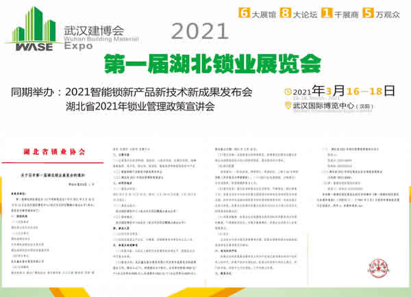 湖北省鎖業(yè)協(xié)會(huì)關(guān)于召開(kāi)第一屆湖北鎖業(yè)展覽會(huì)的通知 鄂鎖協(xié)【2020】1號(hào) 各有關(guān)單位: 第一屆湖北鎖業(yè)展覽會(huì)(以下簡(jiǎn)稱(chēng)展覽會(huì))定于2021年3月16日-3月18日在武漢國(guó)際博覽中心(武漢市漢陽(yáng)區(qū)