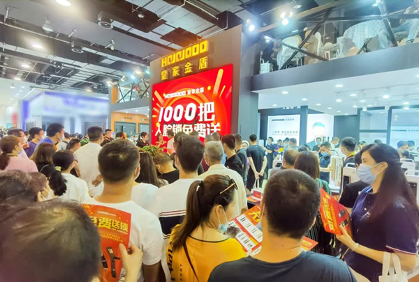 自永康門博會開幕3天以來,皇家金盾人臉鎖可謂初戰告捷,現場簽單突破一千萬元。所展人臉鎖系列精品備受矚目,獲得許多經銷商和客戶朋友的青睞?;始医鸲苋四樻i作為人臉鎖行業領導品牌,慕名而來的朋友絡繹不絕。這次展會皇家金盾氣勢恢宏的展廳盡顯尊崇,彰顯著皇家金盾非凡的企業實力;精湛的產品工藝、美觀的產品反應出皇家金盾卓越的設計與生產能力;服務水平一流的參展團隊更是展示出皇家金盾優秀的企業文化。使得皇家金盾高端展廳當仁不讓成為本次展會的人氣之王。展會剛一開館,全國各地的客商紛沓而至.