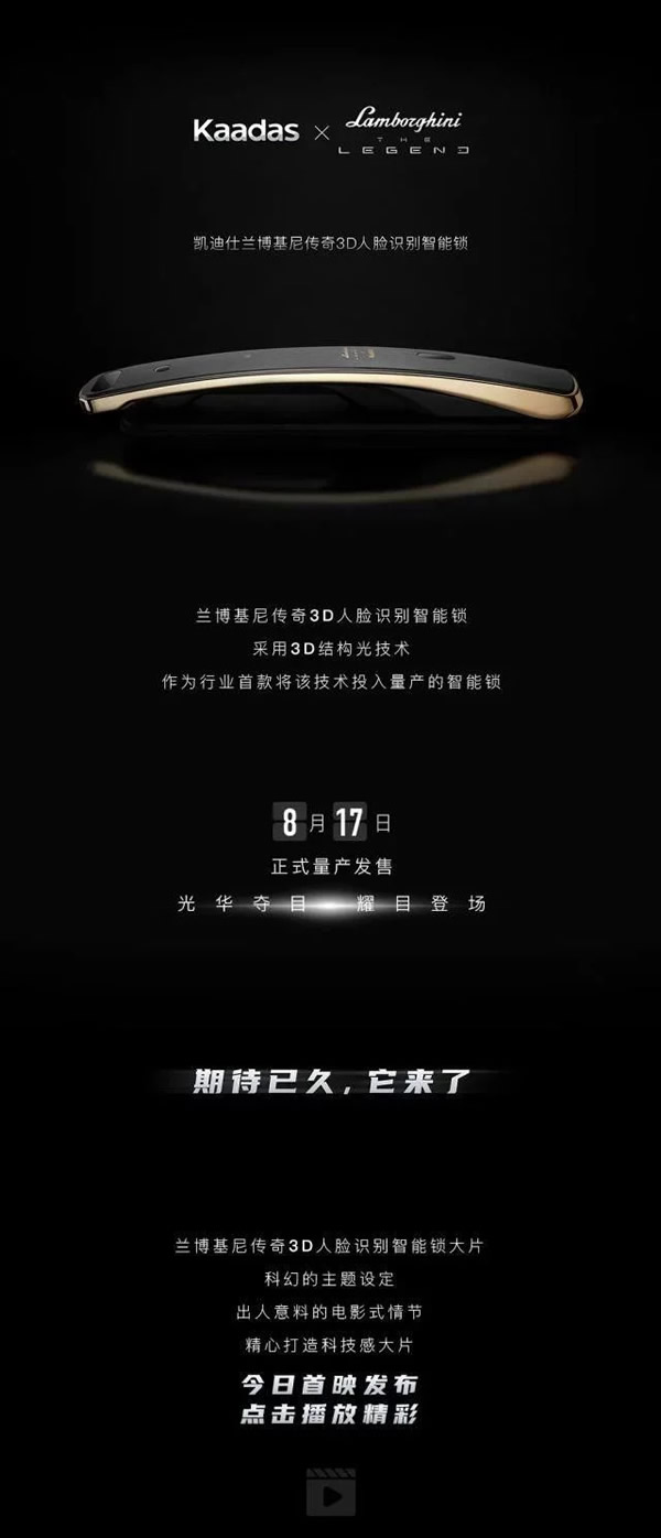 凱迪仕蘭博基尼傳奇3D人臉識別智能鎖科幻大片,震撼首映!