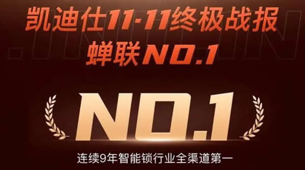 一年一度雙11再次完美收官,凱迪仕繼續(xù)蟬聯(lián)智能鎖行業(yè)全渠道第一名。其中,凱迪仕在天貓平臺拿下電子門鎖行業(yè)銷量第一,在京東平臺拿下智能鎖專業(yè)品牌第一。對于行業(yè)來說,這幾乎是可以提前預(yù)見的結(jié)果。 而與此同時,凱