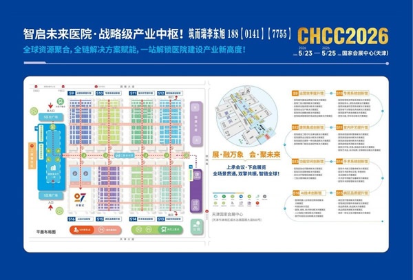 由筑醫臺、國藥勵展、中國醫學裝備協會醫院建筑與裝備分會、北京筑而瑞科技有限公司聯合多家權威機構共同舉辦的“第二十七屆全國醫院建設大會暨國際醫院建設裝備及管理展覽會”(簡稱 CHCC)將于 2026年5月23-25日在天津國家會展中心隆重召開。